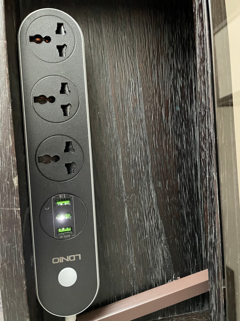 床邊桌裡面有隱藏插座,個人覺得這個設計很棒!
