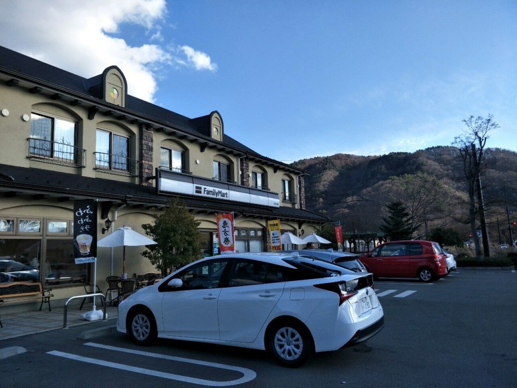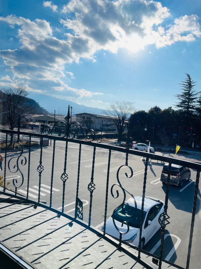 飯店的停車位都會先用三角錐先擋住,Check in完之後再自行把三角錐移開停車。如果不是自駕的話,可以從河口湖站搭環湖巴士至音樂之森,也可以抵達。