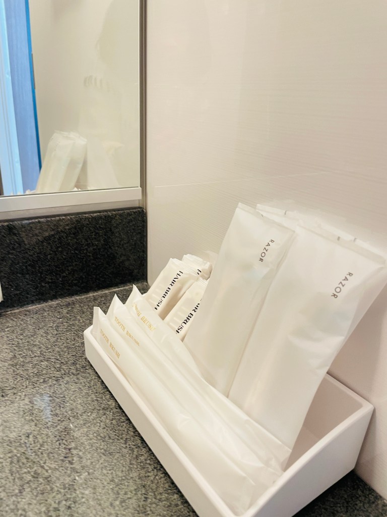 飯店櫃台還有提供雪肌精乳液、精華液和化妝水,有需要的話可以直接拿。兒子的臉頰因為天氣太乾被吹得超級紅,當晚幫他擦了一下雪肌精的乳液,整個消紅超多,手乾裂擦也很滋潤,很棒。