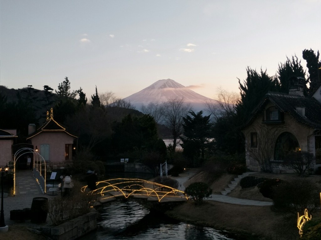 聽完精彩的演出後就在外面花園拍照。花園下午4點點燈,沒想到還可以跟富士山一起拍到照。