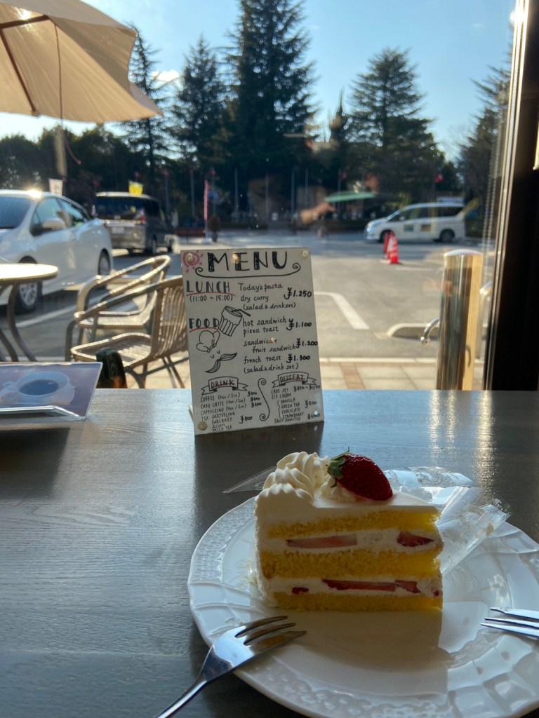 飯店Check in完之後打算去對面的音樂之森走走拍照。去之前妹妹有在一樓點了個蛋糕吃。
