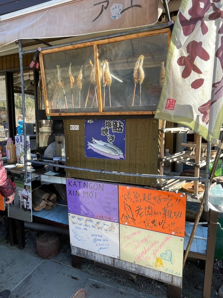 一隻600日圓,烤魚超香超好吃,攤販前面有一些座位可以坐著吃,攤販人很好,一隻烤魚還給一杯玄米綠茶,冷冷的喝熱茶配烤魚,超幸福。