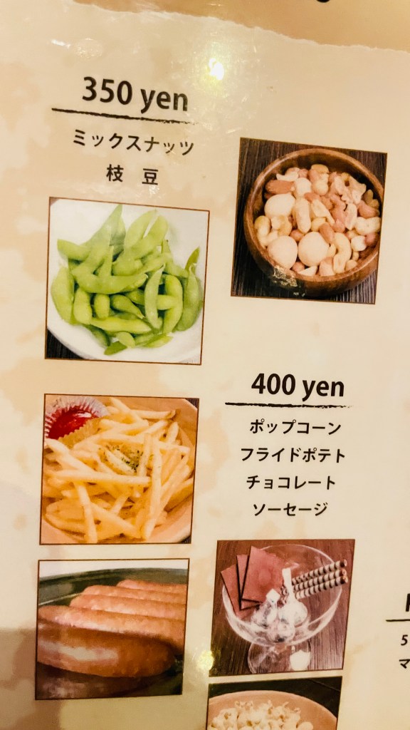 點餐的時候發現會收座位費600日圓的樣子,酒錢再另外算。我們以為一定要點到超過600日圓的酒,所以就點了3杯。一下子3杯就來了….