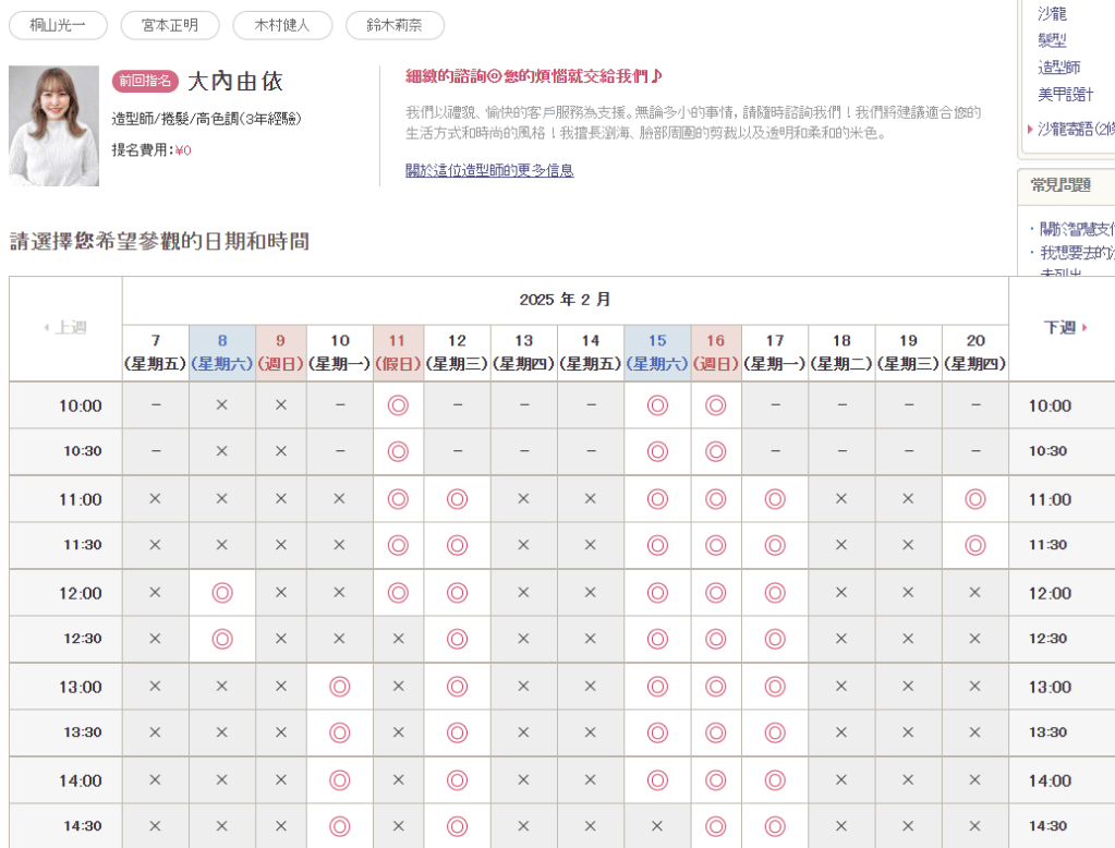 hot pepper beauty的介面使用很簡單,選擇你想要的方案,然後選擇你想要的設計師與時間。