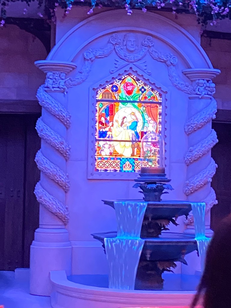 沿路還可以看到阿奇和茶壺太太在講話、蠟燭和時鐘等等美女與野獸裡面的角色。