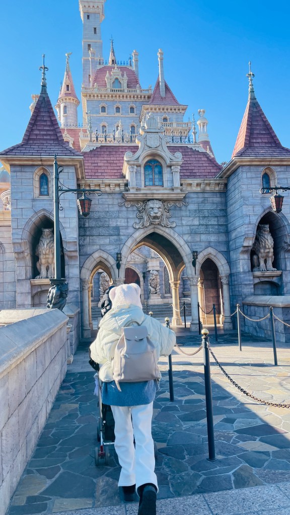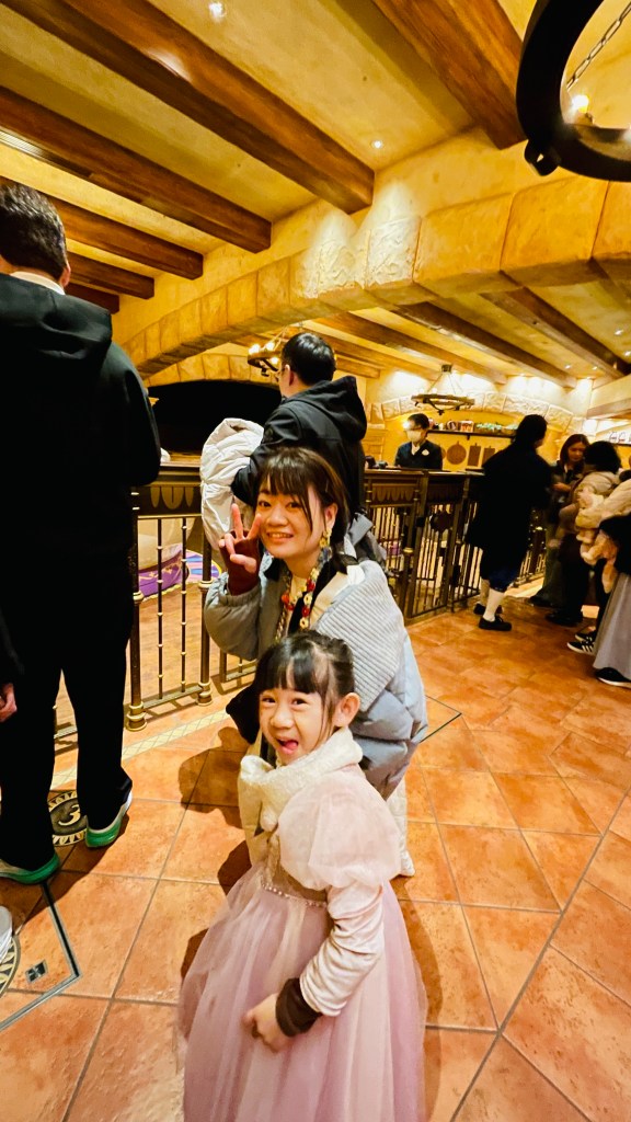 我們去的時間剛好是日本新年假期結束和台灣國中小期末考的時間,人潮算少了。早上8點一出飯店門口剛好看到有人下計程車,老公直接問他能不能載我們去迪士尼陸地,我們就直接搭計程車去了😂