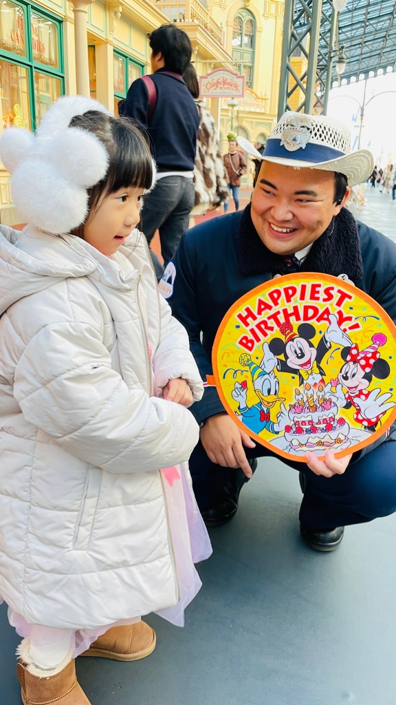 小孩因為掛著生日快樂牌子,所以沿路工作人員都會一直祝她生日快樂,媽媽反而比較興奮(?)