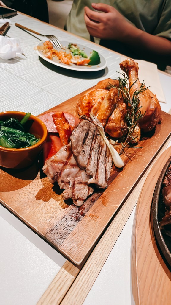 這是party grill,雞肉的部分紐澳良雞翅那種調味,很好吃!!豬肉我記得不好咬,香腸類小孩很愛。