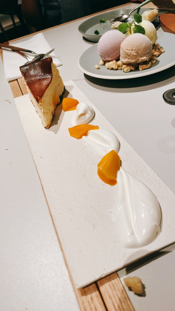 巴斯克乳酪蛋糕,很濃~~~旁邊的奶油是清爽的奶油,加在一起超好吃~~~~
