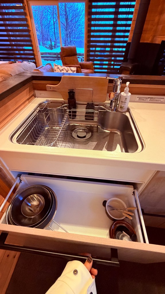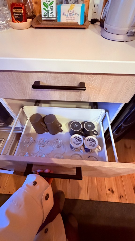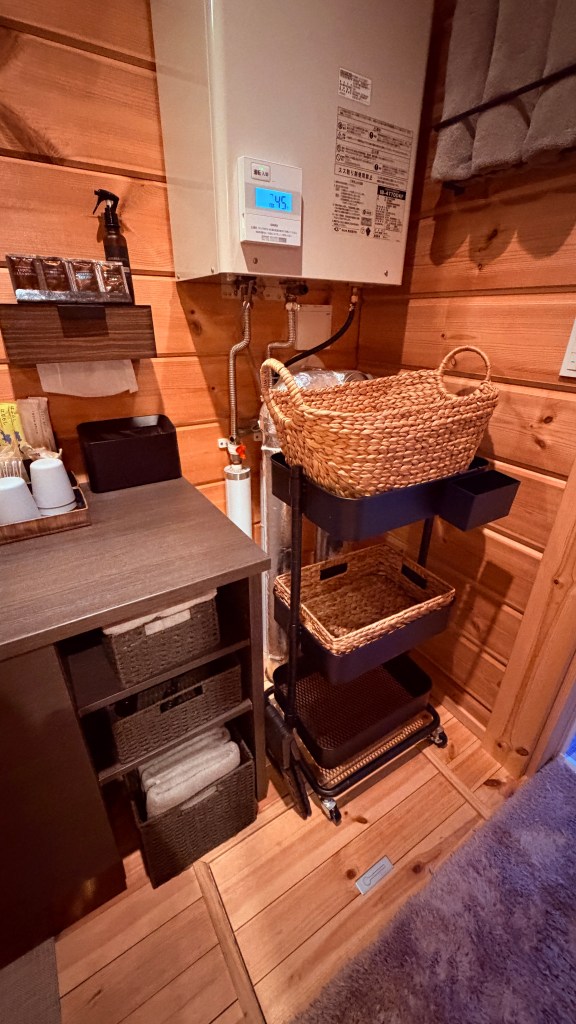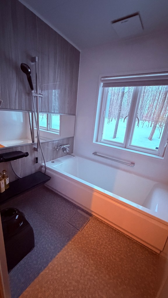 浴室很讚,浴室外還有打燈,後面都是雪不會有人經過,不用擔心泡澡被看光。然後蓮蓬頭是日本最夯的Refa品牌,我測試了各種水柱,都蠻舒服的,但整個蓮蓬頭不輕,所以有在觀望這個蓮蓬頭的人,建議去拿拿看,如果容易手滑拿不穩的人,可以再考慮要不要下手。