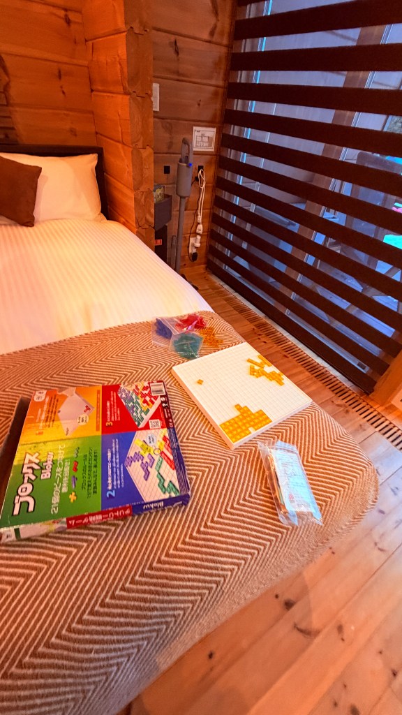 這裡其實還有另一間房間。所以一個小木屋總共有4張床。我們把2張床合併,讓小孩一起睡,大人睡外面的床,本來想實現分房自由~但後來我還是跑進來跟小孩一起睡XD裡面的床比較軟,睡起來比較舒服。