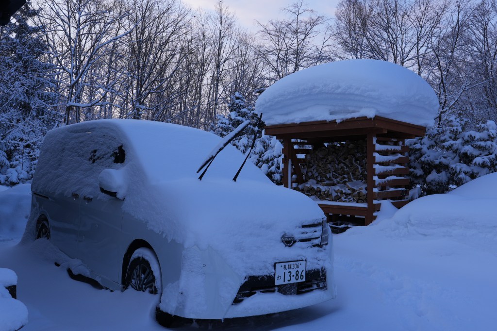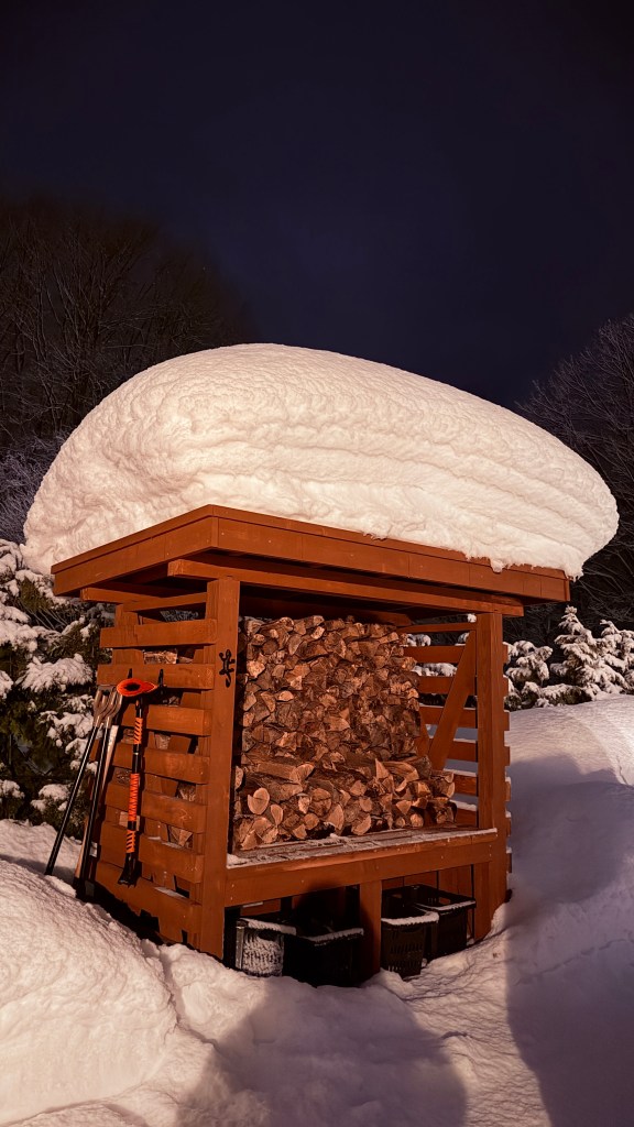 因為住最裡面,所以旁邊有一個囤放木柴的空間。上面的雪好像五花肉🤤