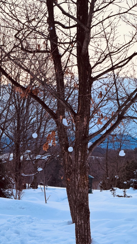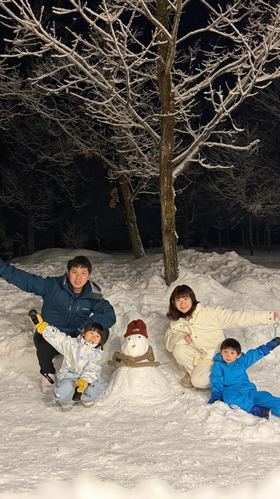 我們還一起做了雪人,找不到樹枝當手,跑去撕木柴的邊邊,撕成木片來當手和鼻子。眼睛則是我突然想到我們買了黑豆還沒吃,拿兩顆來當眼睛🤣🤣第一次做雪人才發現也是蠻難做的欸!