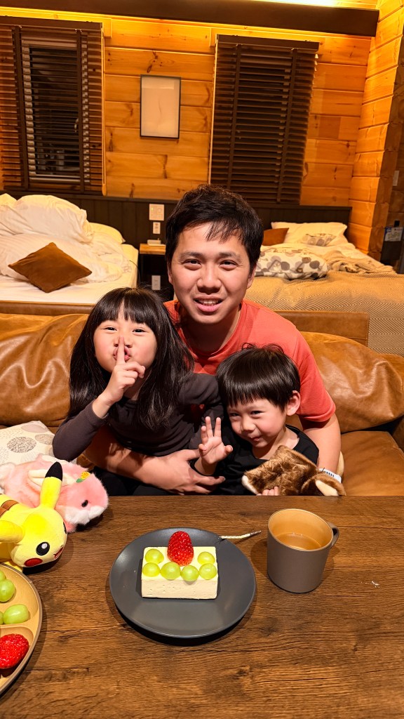 爸爸太喜歡這裡,他說要在這邊先慶生,所以我們就在Ferme La Terre Biei買了一個小蛋糕,自行裝飾幫他慶生。