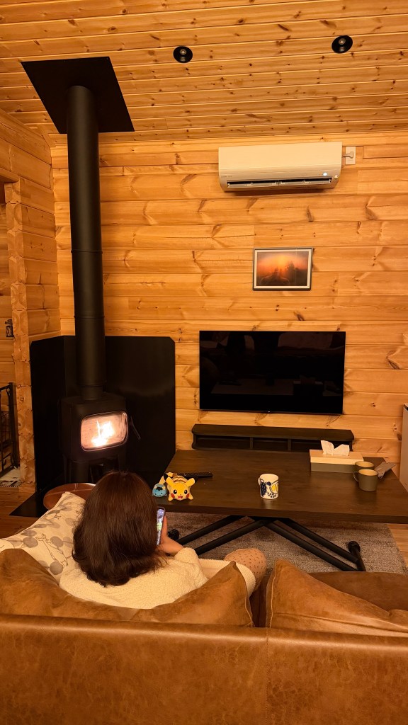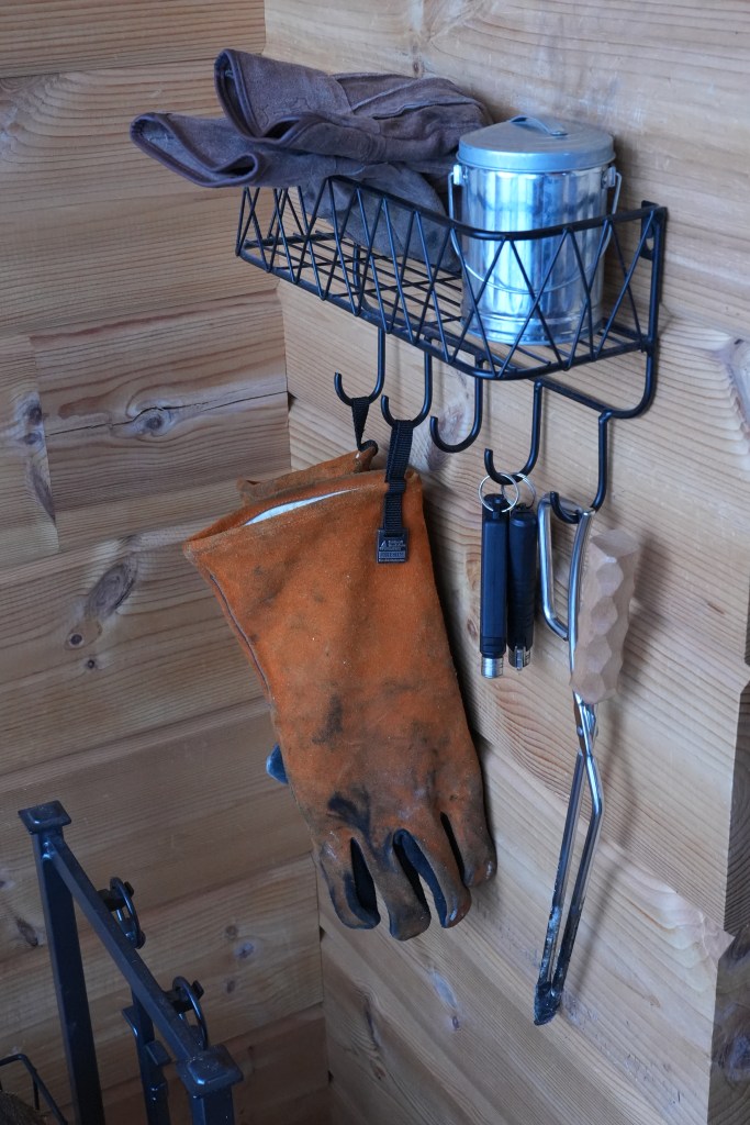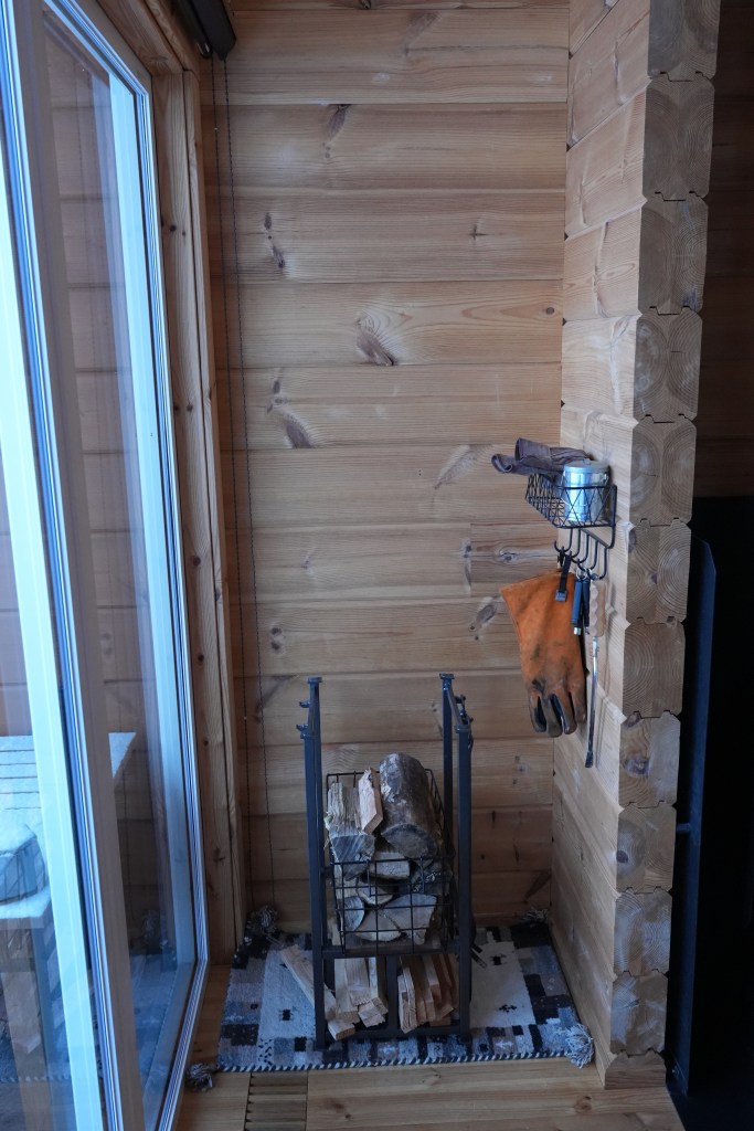 火爐旁邊有一區放木柴的地方,所以不用去門外拿,這裡也有提供手套、火種和夾子,火種不夠可以跟房東說。一開始房東會加Line,有事用Line聯繫很快。